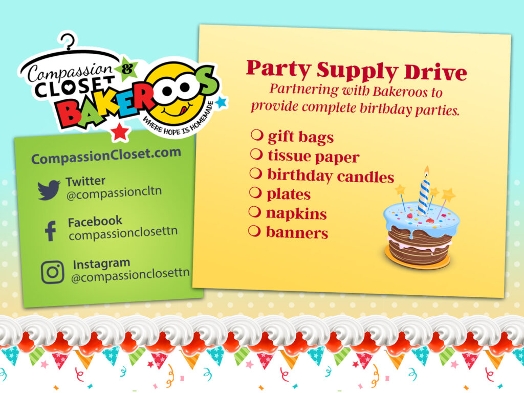 Would you like to host a drive for one of our closets? Simply contact the local director of your desired Compassion Closet Location to schedule a drop-off date, then use the printables and social media images below to spread the word. We also welcome you to print and share our standard information flyers and postcards.